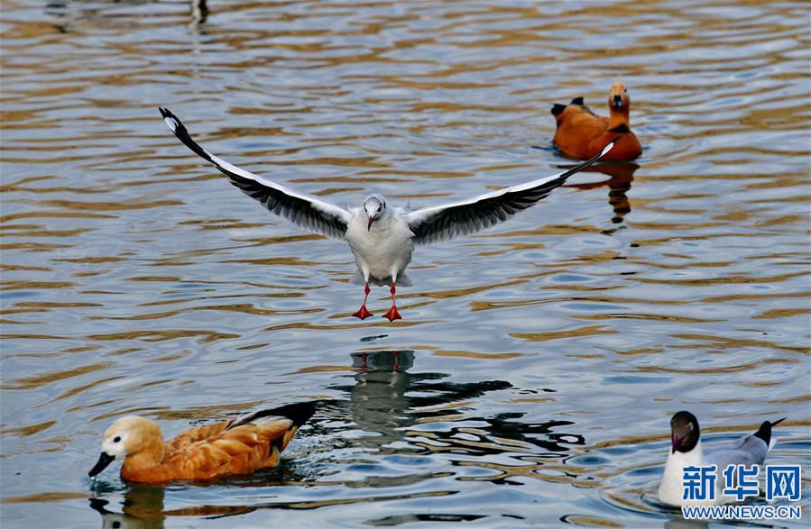 這是在拉薩龍王潭公園拍攝的紅嘴鷗和赤麻鴨(3月13日攝)。新華社記者 張汝鋒 攝