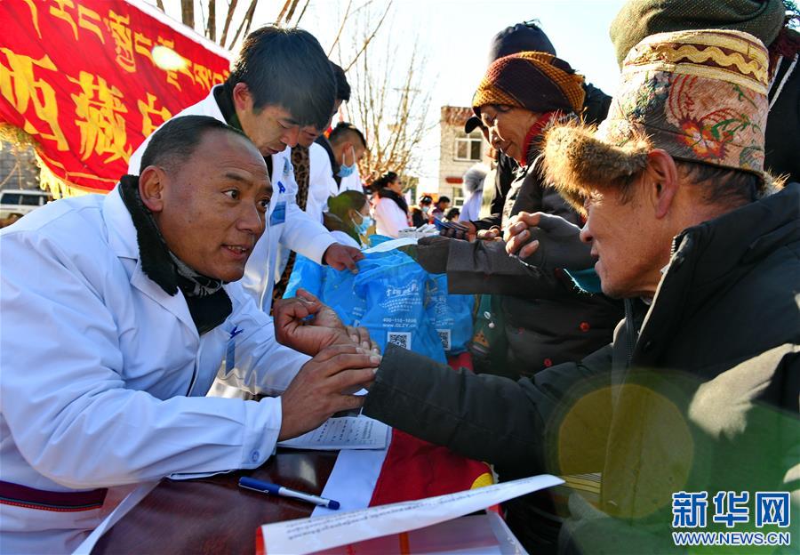 1月17日,西藏自治區(qū)藏醫(yī)院的醫(yī)生在為群眾義診。新華社記者 張汝鋒 攝