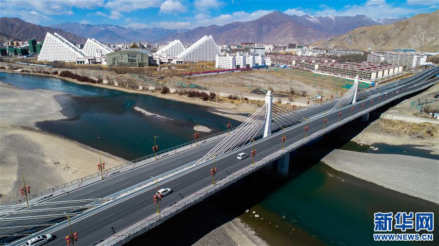 這是橫跨拉薩河的新建環(huán)城路納金大橋段(2018年3月4日無(wú)人機(jī)拍攝)。新華社記者 晉美多吉 攝