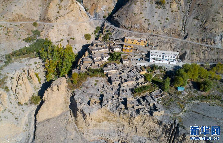 圖為楚松村四代房,位于最前面的土坯房是“第一代”,再往里的土木房是“第二代”,“第三代”是旁邊的磚石房,嶄新的兩層獨(dú)家院落為“第四代”房(2018年9月16日無(wú)人機(jī)拍攝)。 新華社發(fā)(旦增尼瑪曲珠攝)