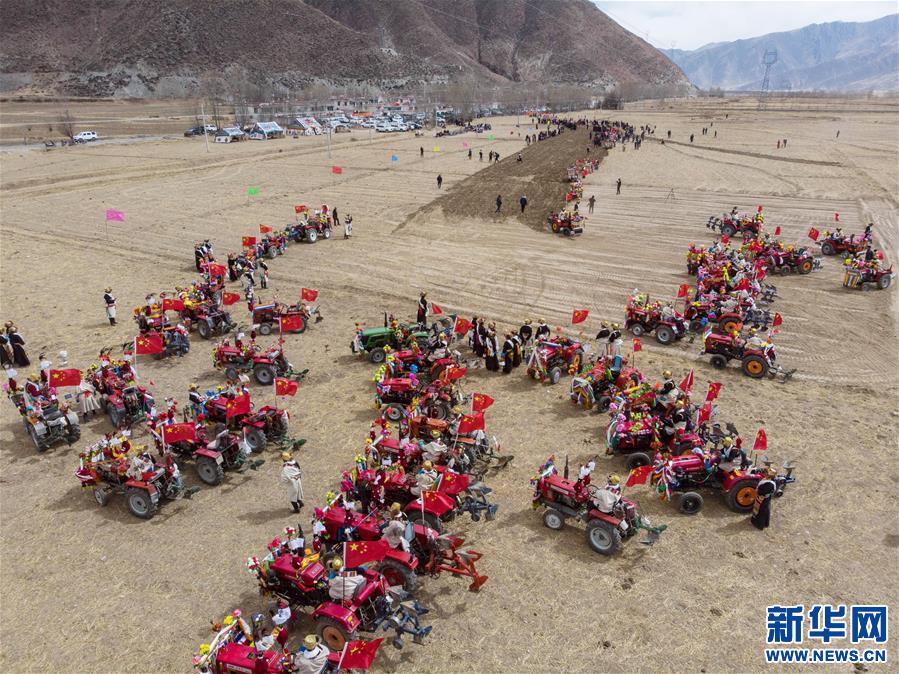 當日,西藏各地男女老幼身著節(jié)日盛裝,駕著一輛輛由彩旗、花朵裝扮一新的拖拉機,涌向待墾的農(nóng)田,載歌載舞迎來一年一度的開耕儀式。