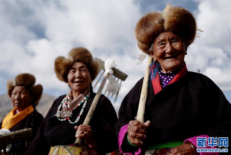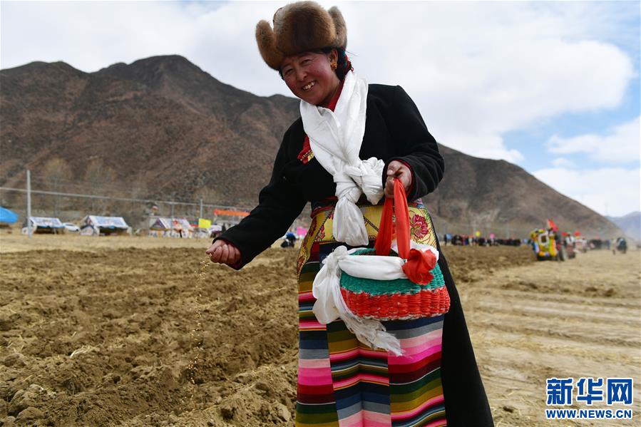 3月16日,拉薩市達孜區(qū)唐嘎鄉(xiāng)的農(nóng)民在開耕儀式上。新華社記者 張汝鋒 攝