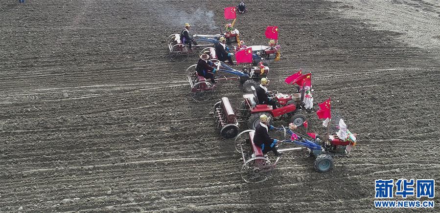 3月16日在拉薩市達(dá)孜區(qū)唐嘎鄉(xiāng)拍攝的開耕儀式現(xiàn)場(chǎng)(無(wú)人機(jī)拍攝)。新華社發(fā)(孫非 攝)