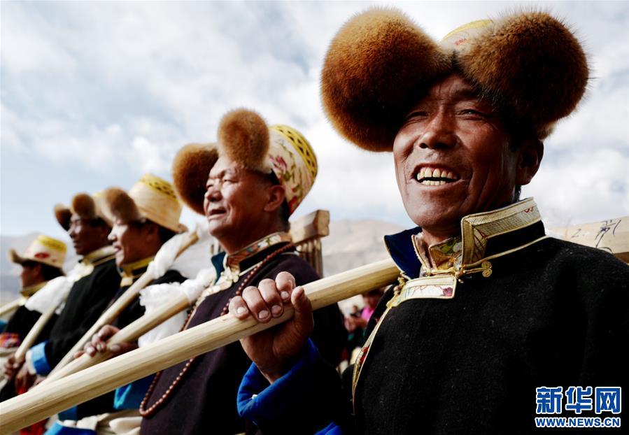 3月16日,拉薩市達(dá)孜區(qū)唐嘎鄉(xiāng)的農(nóng)民在開耕儀式上。新華社記者 張汝鋒 攝