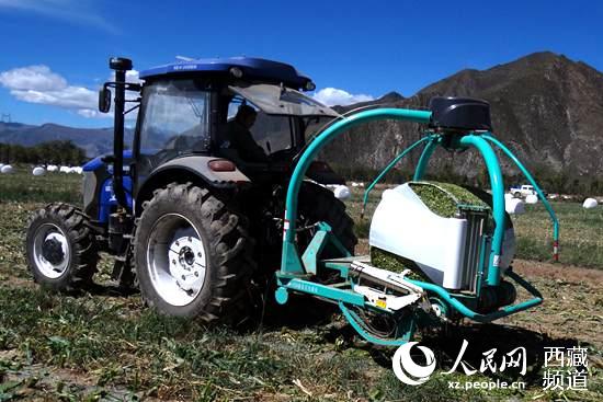 正在作業(yè)的玉米青貯飼料一體機,據了解青貯飼料能保持原有營養(yǎng)價值的75%以上。 麥之穗供圖