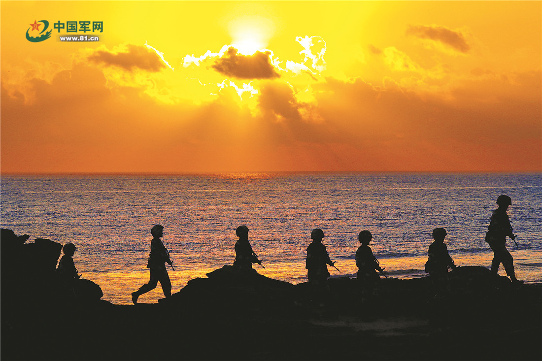 清晨,女兵們伴著朝陽(yáng)巡守海島。