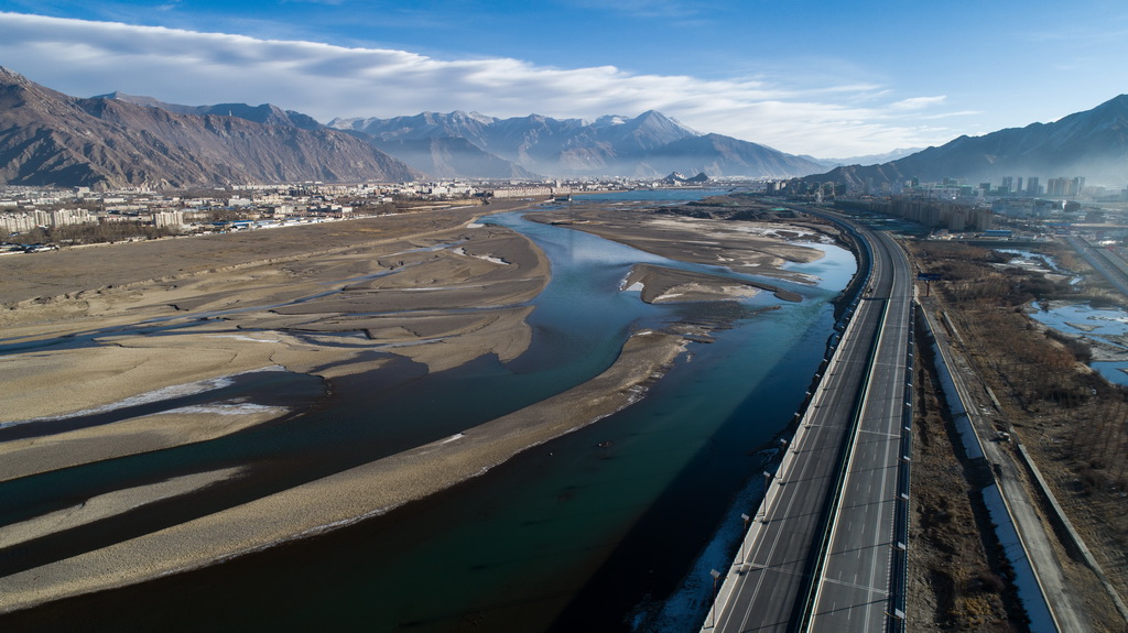 這是橫跨在拉薩河上的拉薩市區(qū)公路(4月3日無人機(jī)拍攝)。新華社記者 晉美多吉 攝這是橫跨在拉薩河上的拉薩市區(qū)公路(4月3日無人機(jī)拍攝)。新華社記者 晉美多吉 攝