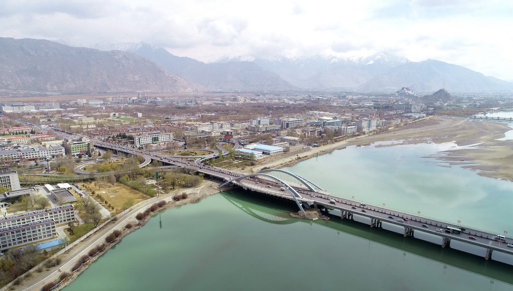 這是橫跨在拉薩河上的拉薩市區(qū)公路(4月3日無(wú)人機(jī)拍攝)。新華社記者 晉美多吉 攝這是橫跨在拉薩河上的拉薩市區(qū)公路(4月3日無(wú)人機(jī)拍攝)。新華社記者 晉美多吉 攝
