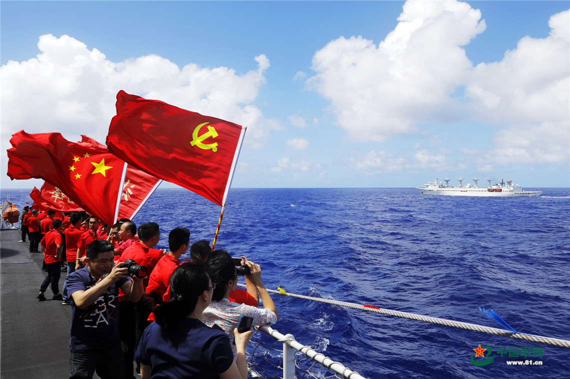 3月17日,恰逢第42個(gè)國(guó)際航海日,正在奔赴任務(wù)海區(qū)的遠(yuǎn)望3號(hào)船與圓滿(mǎn)完成海上測(cè)控任務(wù)返航途中的遠(yuǎn)望5號(hào)船,在太平洋某海域美麗“邂逅”。