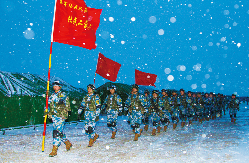 2014年2月20日至3月23日,海軍首次組織陸戰(zhàn)隊(duì)赴朱日和訓(xùn)練基地進(jìn)行寒訓(xùn)。(廖志勇/攝)