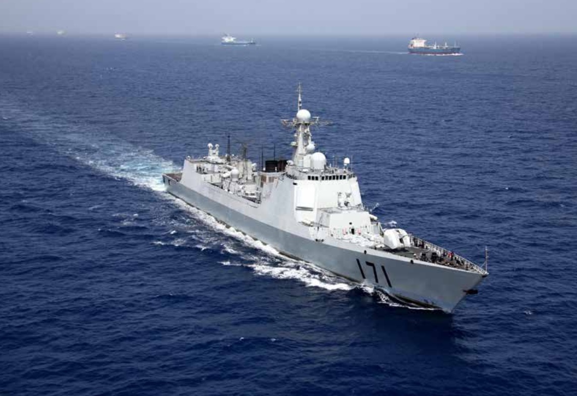 我國海軍第一代防空型導(dǎo)彈驅(qū)逐艦,被譽(yù)為“中華神盾”。2008 年,海口艦首次護(hù)航,成功地解救被海盜追擊的利比里亞籍商船、遭海盜襲擊的“雁蕩海號(hào)”輪船,出色地完成接護(hù)我被海盜劫持的“天裕 8 號(hào)”漁船等任務(wù),創(chuàng)造了我國首次組織海上作戰(zhàn)力量赴海外履行國際人道主義義務(wù)、首次赴遠(yuǎn)海保護(hù)重要運(yùn)輸線安全等多項(xiàng)任務(wù)。