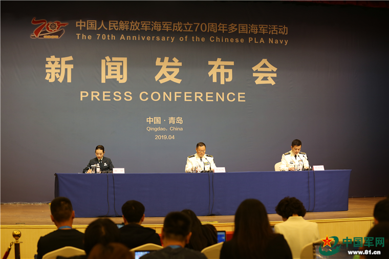 中國(guó)海軍成立70周年多國(guó)海軍活動(dòng)首場(chǎng)新聞發(fā)布會(huì)現(xiàn)場(chǎng)。中國(guó)軍網(wǎng)記者 董兆輝攝