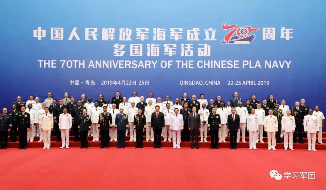 4月23日上午,國家主席、中央軍委主席習(xí)近平在青島集體會見應(yīng)邀出席中國人民解放軍海軍成立70周年多國海軍活動的外方代表團(tuán)團(tuán)長,代表中國政府和軍隊(duì)向出席活動的各國海軍官兵表示熱烈歡迎。圖為會見前,習(xí)近平同應(yīng)邀出席中國人民解放軍海軍成立70周年多國海軍活動的外方代表團(tuán)團(tuán)長合影。