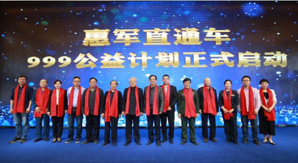 4月15日,惠軍直通車(chē)999公益計(jì)劃啟動(dòng)儀式在京舉行。此次活動(dòng)由惠軍工程、新浪公益、百度公益聯(lián)合倡議發(fā)起,開(kāi)國(guó)元?jiǎng)咨磉吂ぷ魅藛T、陸海空各軍兵種代表、國(guó)家電商扶貧代表及社會(huì)各界擁軍愛(ài)心人士近百人參加了啟動(dòng)儀式。