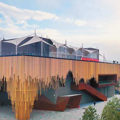 由94把巨大鋼“花傘”構(gòu)成的國際館,宛如一片絢爛的“花海”。(除署名外均為本報記者賀勇攝)