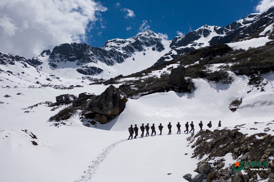 西藏軍區(qū)多仁邊防連巡邏小分隊(duì)艱難地巡邏在海拔4200多米的達(dá)姆拉山口。中國軍網(wǎng)記者柳軍 攝