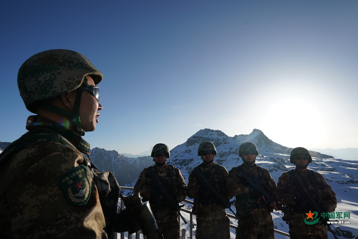 旭日剛剛爬上山頂,4名卓拉哨兵已經(jīng)全副武裝,集結(jié)待命。所在連指導員陳龍做簡短動員,吹響了巡邏號角。中國軍網(wǎng)記者柳軍 攝