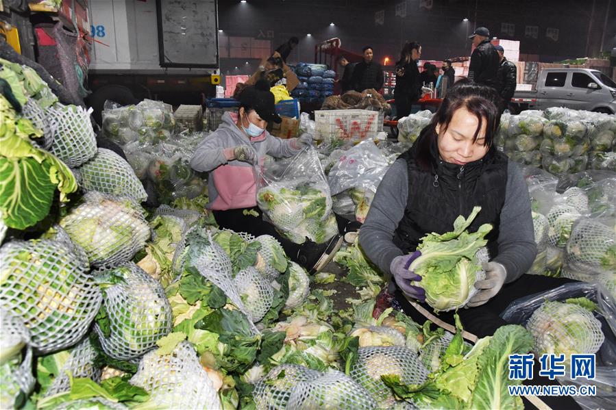 菜商在整理種菜基地運(yùn)來的菜花,準(zhǔn)備發(fā)往全國各地(4月12日攝)。 新華社記者 李紫恒攝