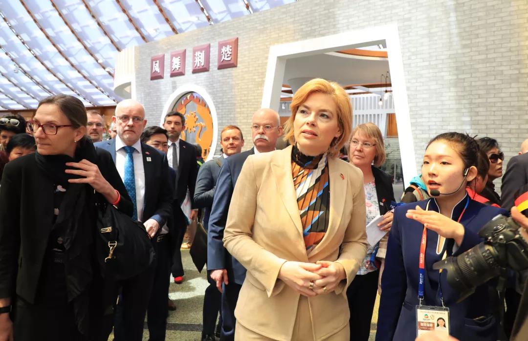 活動(dòng)后,德國(guó)聯(lián)邦食品與農(nóng)業(yè)部部長(zhǎng)朱莉婭·克洛克納和其代表團(tuán)集體參觀中國(guó)館、德國(guó)展園等。