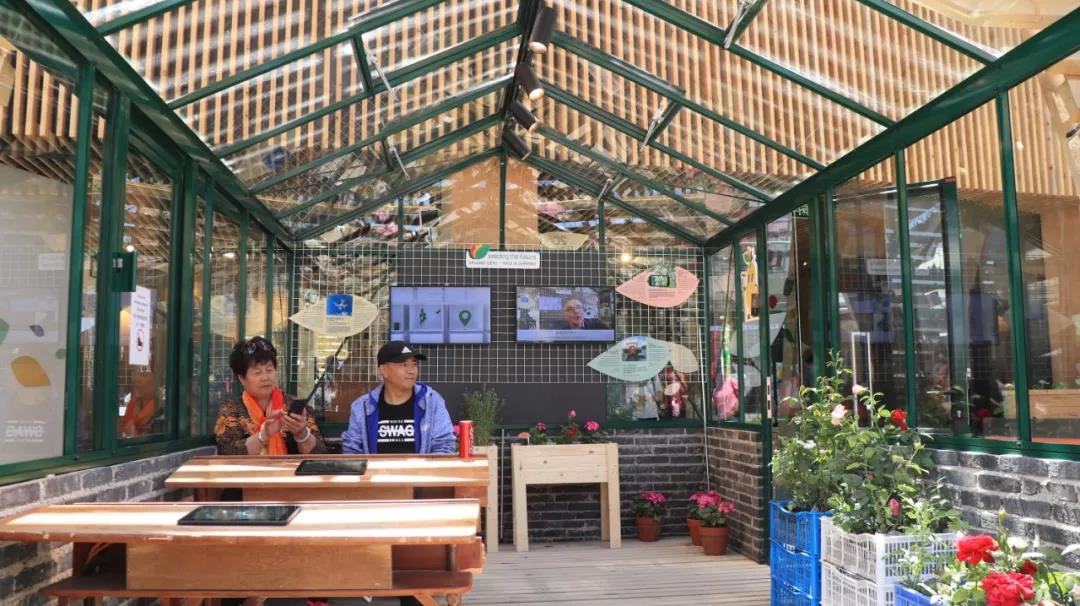 另外,德國(guó)展園內(nèi)還有巢箱、陽(yáng)光溫室、紀(jì)念品商店等區(qū)域。在巢箱,人們翻動(dòng)箱蓋就可以看到相關(guān)信息;沿著巢箱走出展廳就能看到陽(yáng)光溫室,這里是德國(guó)學(xué)生們學(xué)習(xí)種植知識(shí)的課堂,不僅有專門從德國(guó)運(yùn)來的書桌椅,還展示了德國(guó)人們對(duì)2060年的生活方式設(shè)想。
