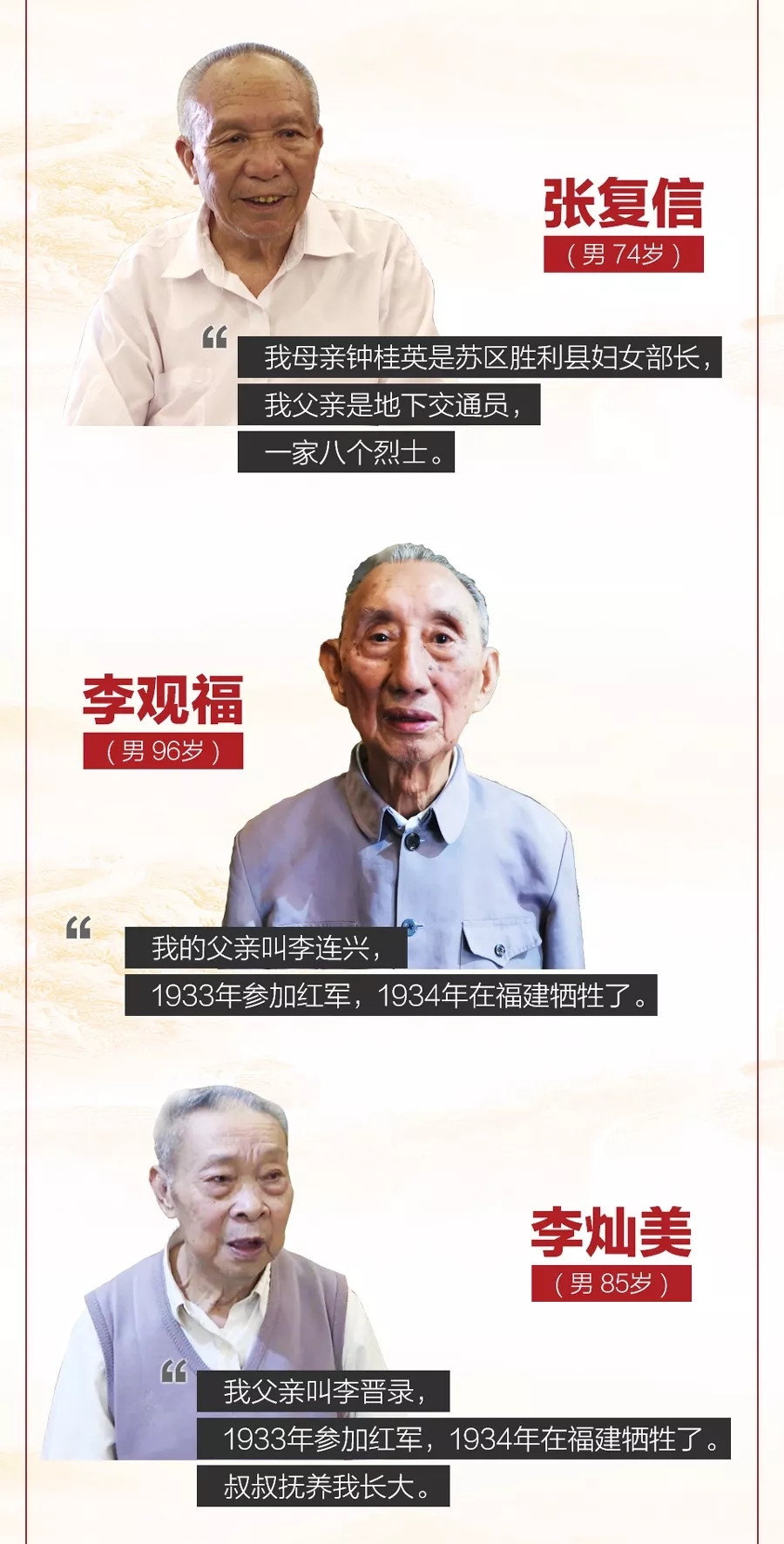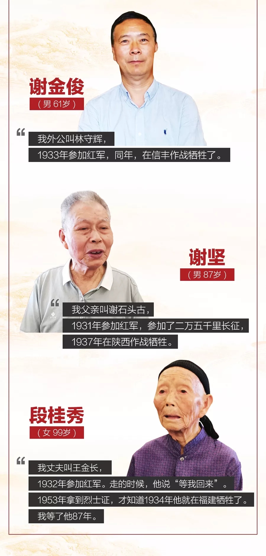 于都是中央蘇區(qū)最后一塊根據(jù)地,85年前,紅軍長征在這里集結(jié)出發(fā)。參觀結(jié)束后,總書記親切會(huì)見了9名特殊的代表,他們都是于都縣的紅軍后代、革命烈士家屬,每一個(gè)人的背后都有著令人動(dòng)容的故事。