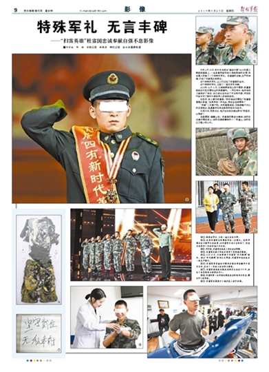 今年2月18日,在中央電視臺“感動中國”2018年度人物頒獎盛典上,一名身著軍裝的戰(zhàn)士舉起殘缺的右臂,向全國人民敬了一個特殊的軍禮。空蕩蕩的衣袖,莊嚴的神情,打動了無數(shù)觀眾和網友。這個特殊的軍禮,讓人們記住了杜富國的名字。請關注今日《解放軍報》的報道——