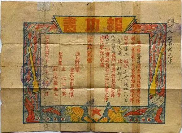 與“人民功臣”勛章一同被“曝光”的,還有一本立功證書和一份西北野戰(zhàn)軍的報功書。