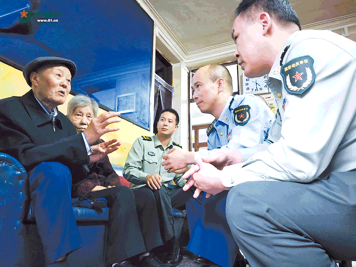 張富清向前來看望他的官兵,講述當(dāng)年他和戰(zhàn)友英勇戰(zhàn)斗的故事。