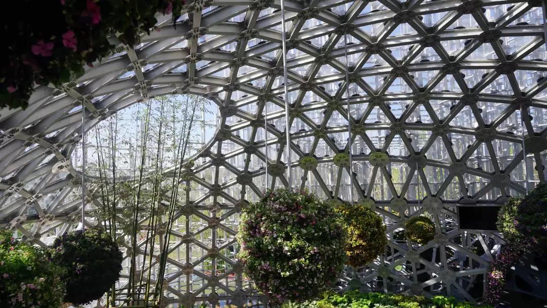 另外,還充分運(yùn)用垂直綠化技術(shù),將上海最引人入勝的浦江兩岸天際線用綠植的形式予以展示,既體現(xiàn)了上海城市特色,又表現(xiàn)了過去與現(xiàn)在、西方與東方之間的合作交融。在云巢內(nèi)部和云橋欄桿處,利用多肉類墻面、懸掛綠化豐富了室內(nèi)空間和游覽趣味,展示了上海特色綠化種植技術(shù)。