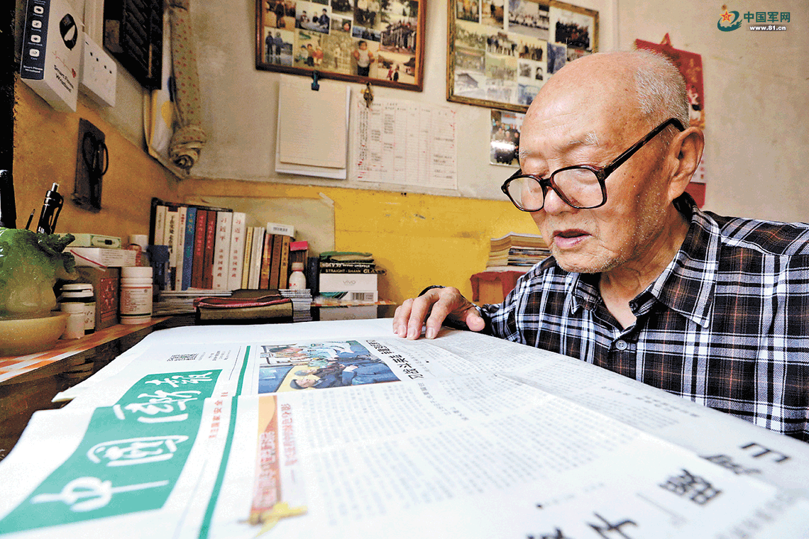 雖已95歲高齡,張富清依然堅持讀書看報,圖為張富清閱讀《中國國防報》。中國國防報記者 穆可雙攝