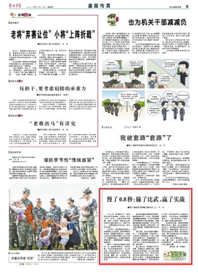“5月上旬,營里組織了一場(chǎng)連貫作業(yè)的比武考核。比武前,作為“種子”選手,大家對(duì)我寄予厚望。而我,對(duì)營里“精武標(biāo)兵榜”桂冠的位置也期待已久。我暗下決心:一定要把握住這次機(jī)會(huì),絕不容許失誤。”請(qǐng)關(guān)注今日《解放軍報(bào)》的報(bào)道——