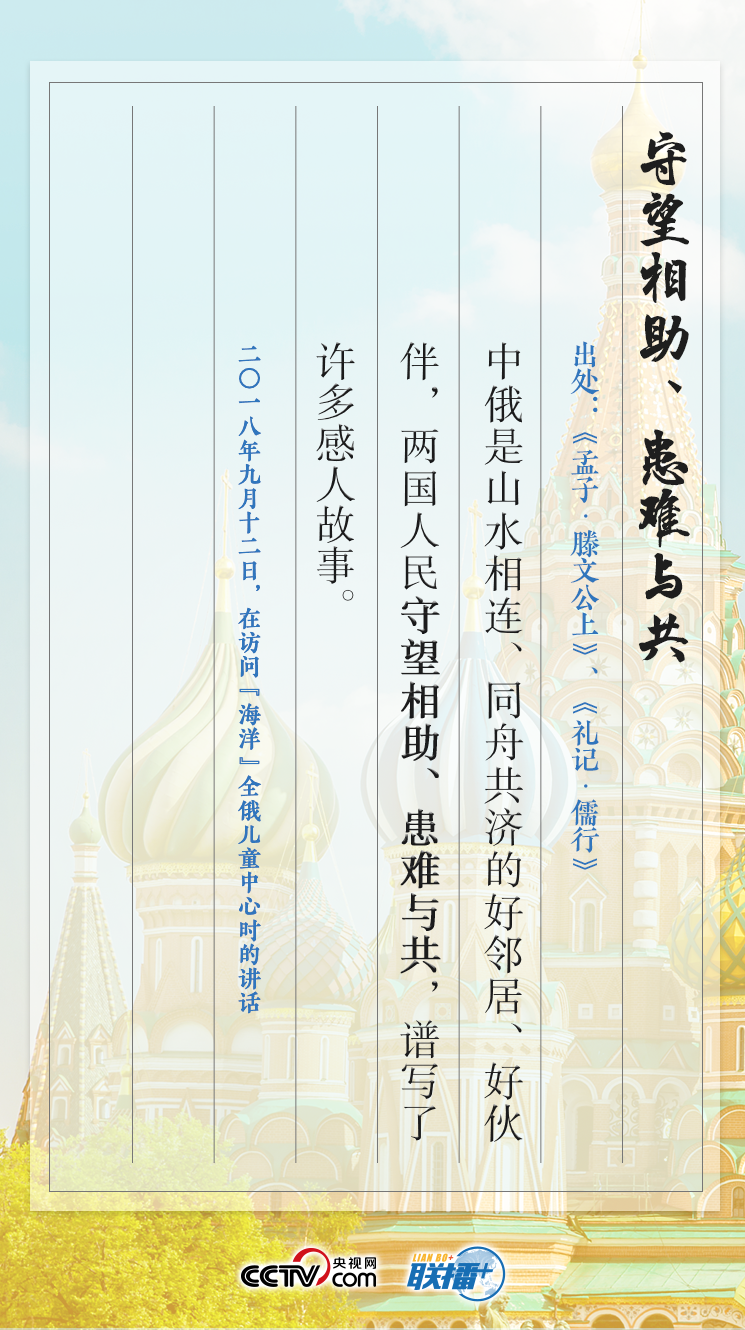 “親仁善鄰,國之寶也。”廣泛采擷古人的經(jīng)典名句,巧加點(diǎn)化,賦予其鮮活的時代價值是習(xí)近平講話的一大特色。近年來,習(xí)近平曾多次引用古文典籍中的佳句,情真意切地表達(dá)了對中俄關(guān)系的高度重視,寓意深邃,生動傳神。央視網(wǎng)特整理,帶您一起學(xué)習(xí)經(jīng)典,品味其中的獨(dú)特韻味。