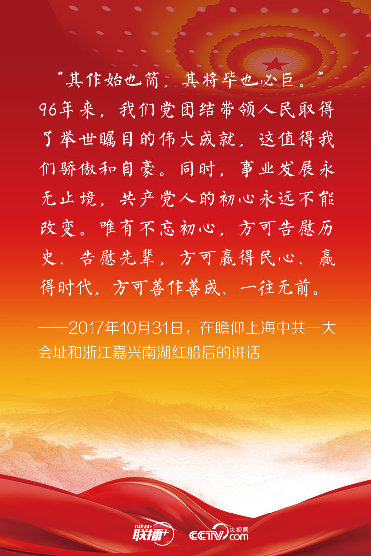 不忘初心,方得始終。在紀念中國共產黨成立95周年大會上,習近平總書記向全黨鄭重發(fā)出“不忘初心、繼續(xù)前進”的號召。此后,他在許多場合都談到中國共產黨人的初心和使命,并為新時代的奮斗征程指明了方向。央視網特整理,與您一起學習理解總書記始終不渝的初心。