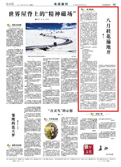 《八月桂花遍地開》這支革命歌曲,從鄂豫皖革命根據(jù)地一直唱到全中國,從部隊(duì)唱到地方,從艱苦卓絕的戰(zhàn)爭年代唱到新時(shí)代,而今已經(jīng)成為人們緬懷歷史、傳承紅色基因的重要內(nèi)容。它就像一柄精神火炬,在一代代人的激情傳唱中,不斷點(diǎn)燃著戰(zhàn)斗情懷,激勵(lì)著人們不斷奔向前方。請(qǐng)關(guān)注《解放軍報(bào)》的文章——