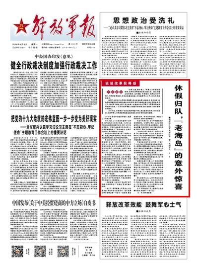 這些天來,向海島官兵傾斜的政策制度,正一條條緊鑼密鼓地落地見效,每一條都在我心里激起朵朵浪花。