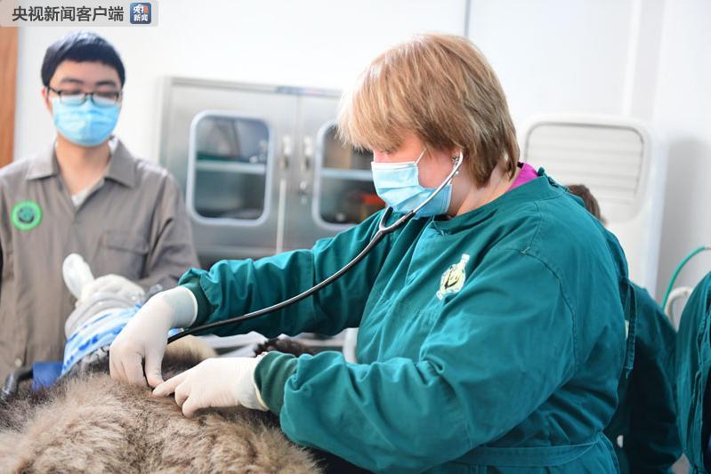 △莫斯科動(dòng)物園獸醫(yī)和飼養(yǎng)員在四川大熊貓繁育基地現(xiàn)場(chǎng)觀摩學(xué)習(xí)大熊貓?bào)w檢。(央視記者鄭波提供)