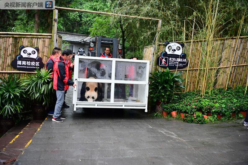 △5月29日,“如意”和“丁丁”從四川雅安的碧峰峽大熊貓基地出發(fā),前往俄羅斯開(kāi)展科研合作。(央視記者鄭波提供)