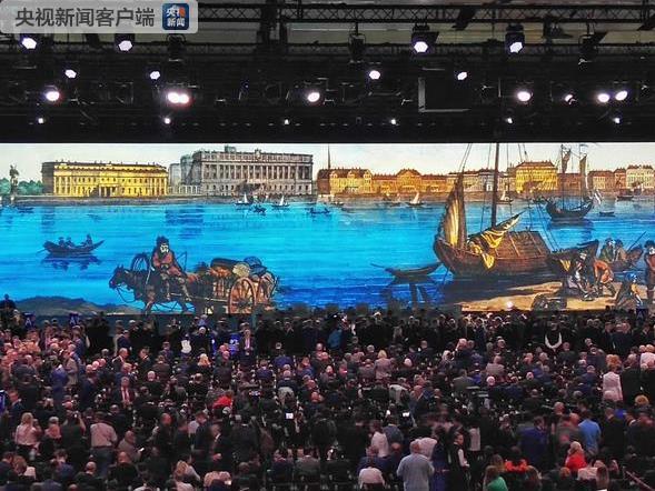 △會(huì)場(chǎng)的背景板是正在開橋的涅瓦河。在當(dāng)天的致辭中,習(xí)近平提到,普京總統(tǒng)曾經(jīng)彈奏過一首俄羅斯歌曲:“涅瓦河畔有一座城,那是我們勞動(dòng)的結(jié)晶”。一席話激起全場(chǎng)掌聲。(央視記者鐘銳拍攝)