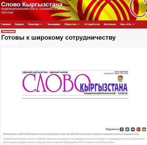 吉爾吉斯斯坦言論報(bào)網(wǎng)站報(bào)道截圖