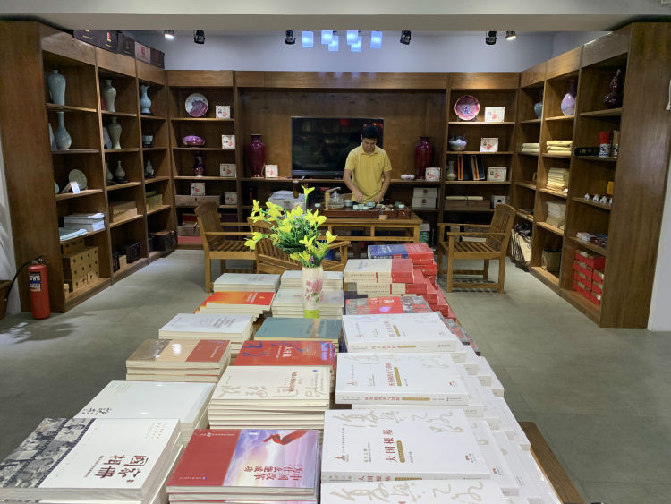 比什凱克市中心的新華書(shū)店里,中文書(shū)籍?dāng)[放在醒目位置。(新華社記者 高潔 攝)