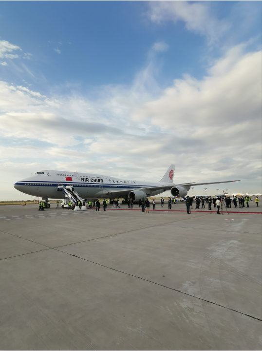 △晚上7點(diǎn)40分許,專機(jī)抵達(dá)瑪納斯國(guó)際機(jī)場(chǎng)。(央視記者趙東辰拍攝)