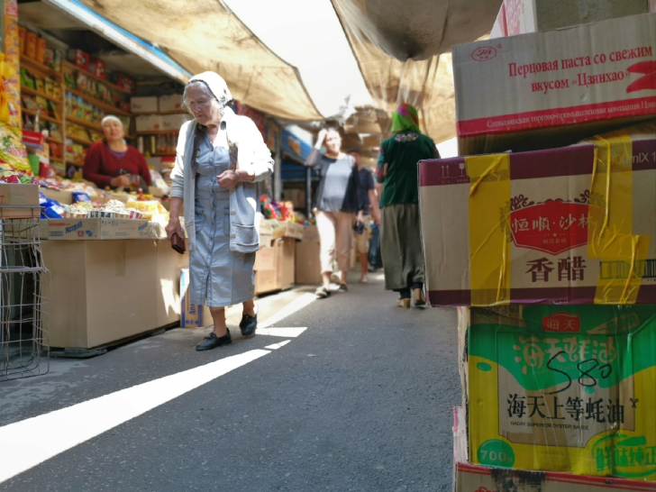 △別列科特綜合大市場(chǎng)位于比什凱克市中心,是當(dāng)?shù)匾?guī)模較大的綜合性市場(chǎng)之一。(央視記者張曉鵬拍攝)