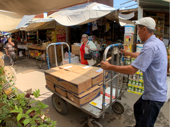 △這些貨物除部分是本地生產(chǎn)之外,絕大多數(shù)都是從中國(guó)、俄羅斯、哈薩克斯坦等周邊國(guó)家進(jìn)口。(央視記者張淳拍攝)