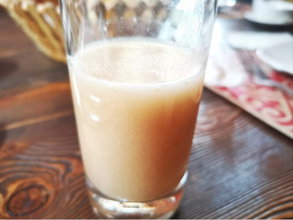 △在吉爾吉斯斯坦,這種叫做“馬克瑟姆”的飲料,是飲品中的“黑暗料理”,堪稱吉爾吉斯“豆汁兒”。(央視記者張曉鵬拍攝)