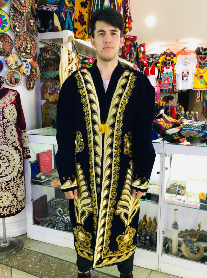 △在2014年那次訪問(wèn)中,拉赫蒙總統(tǒng)邀請(qǐng)習(xí)主席夫婦到總統(tǒng)官邸參加家宴。拉赫蒙親手為習(xí)近平穿上了塔吉克民族塔袍。這是《時(shí)政新聞眼》邀請(qǐng)翻譯小哥穿上塔袍試試看。