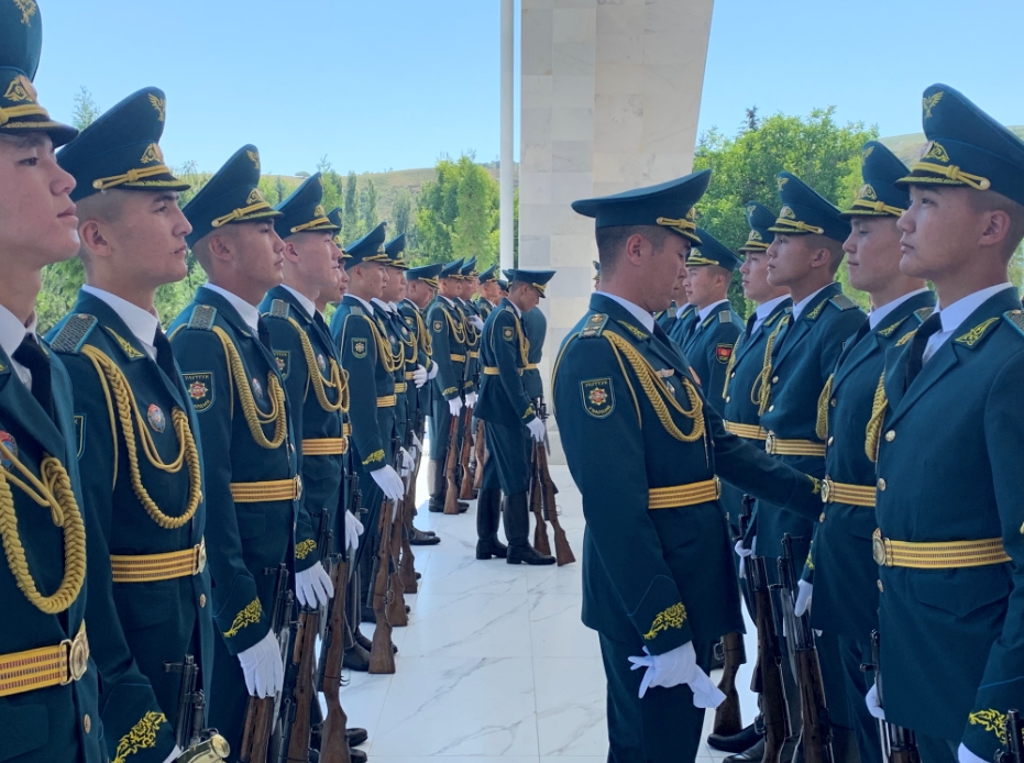 △歡迎儀式前,儀仗隊(duì)在整理軍容。