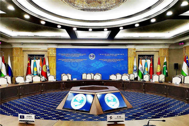 △成員國元首先舉行小范圍會談,隨后邀請觀察員國元首以及有關國際和地區(qū)組織代表參加大范圍會談。大范圍會談和會后的簽字儀式在這里舉行。