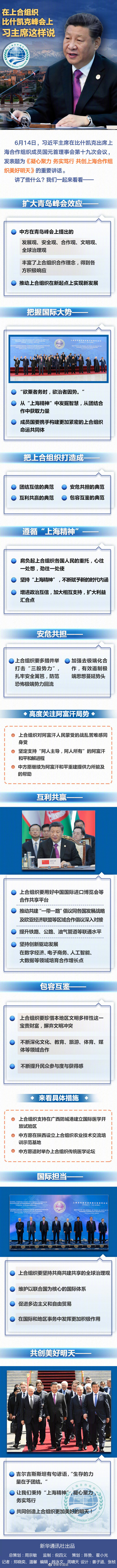 6月14日,習(xí)近平主席在比什凱克出席上海合作組織成員國元首理事會第十九次會議,發(fā)表題為《凝心聚力 務(wù)實(shí)篤行 共創(chuàng)上海合作組織美好明天》的重要講話。