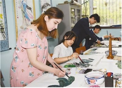 6月10日,學(xué)生在塔吉克斯坦民族大學(xué)孔子學(xué)院學(xué)習(xí)中國(guó)繪畫(huà)。新華社記者 沙達(dá)提攝