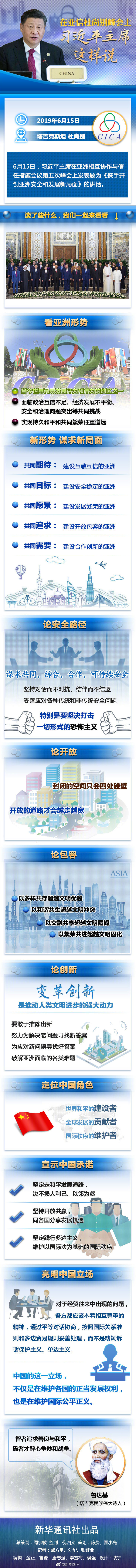 6月15日,習近平主席在亞洲相互協(xié)作與信任措施會議第五次峰會上發(fā)表題為《攜手開創(chuàng)亞洲安全和發(fā)展新局面》的講話。